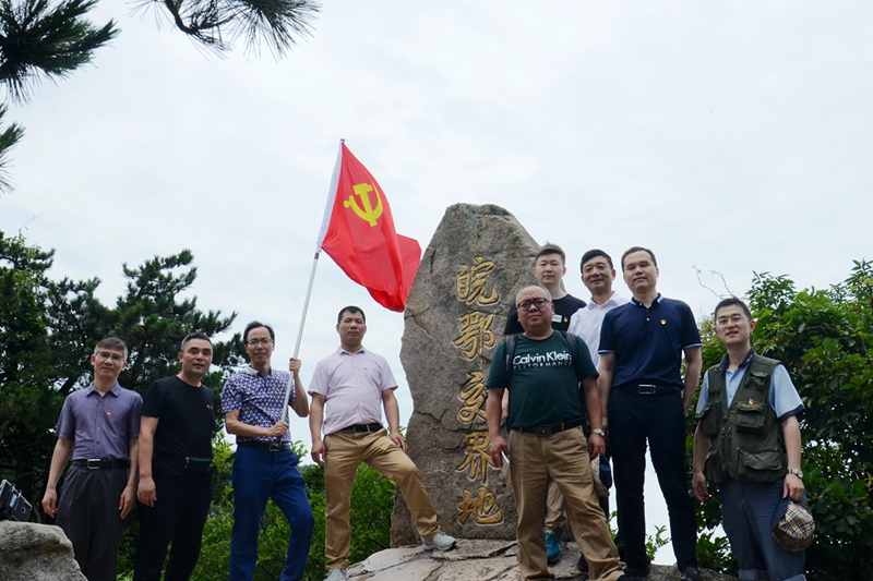 2019年7月13日上午8點(diǎn),海陸重工黨員先鋒隊(duì)成員共計十六人,沿著72年前革命先烈的道路,從大別山北麓險道龍脊背攀登,與當(dāng)日中午12點(diǎn)左右全員登頂,歷時四個小時。